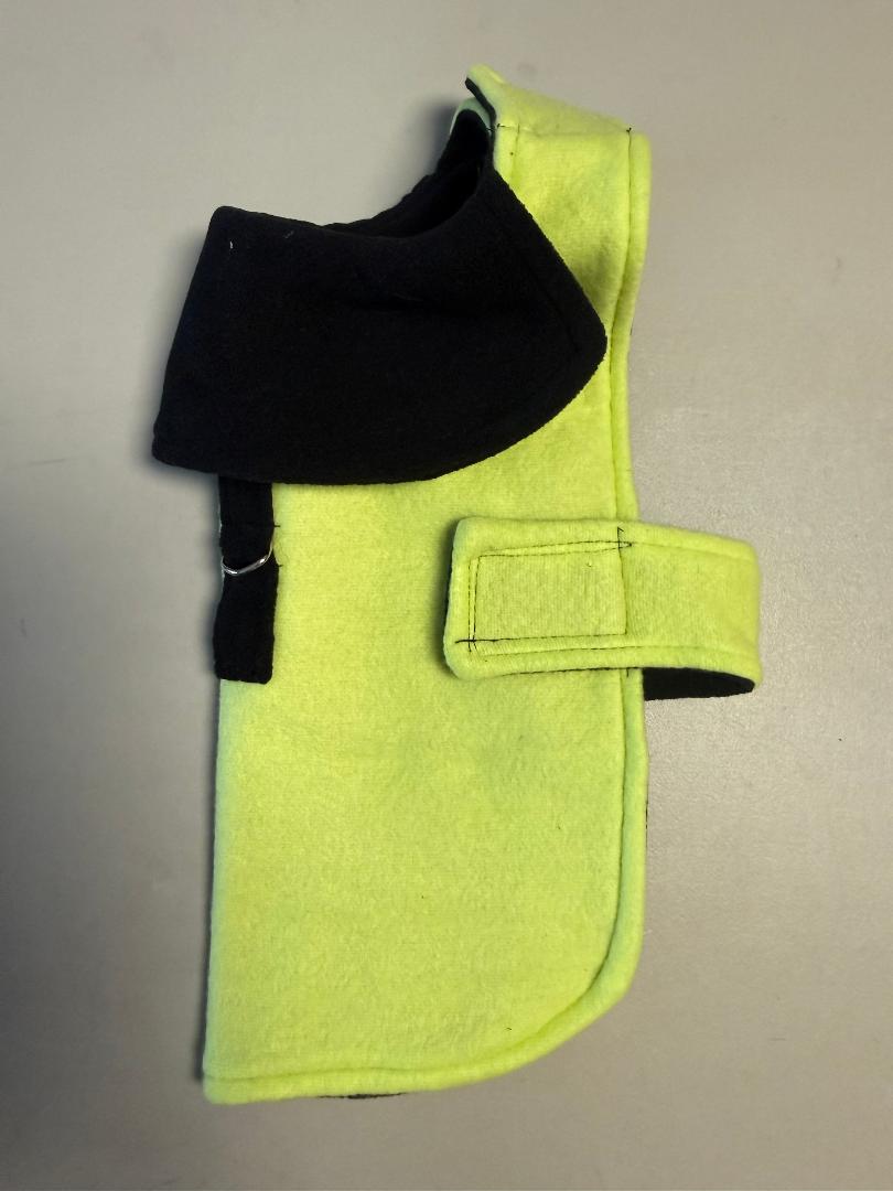 Lime green fleece coat with black collar & black based
